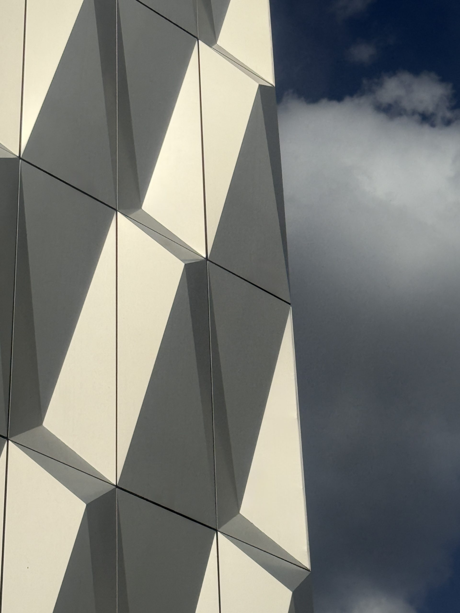This series transforms a singular urban facade into an abstract statement of individuality and harmony with nature. Each image explores a different facet of geometry, light, and perspective—revealing how architectural form merges with the sky and environment. The interplay of crisp lines, shifting shadows, and subtle reflections allows the “solitaire” to oscillate between material precision and poetic abstraction. Through minimalism and rhythmic composition, the viewer is invited to discover not only the structure’s inner order but also its unexpected dialogue with the natural world.